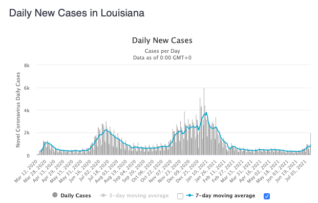 New hospital admissions in Louisiana due to COVID-19 are up +49.3% from a week ago.