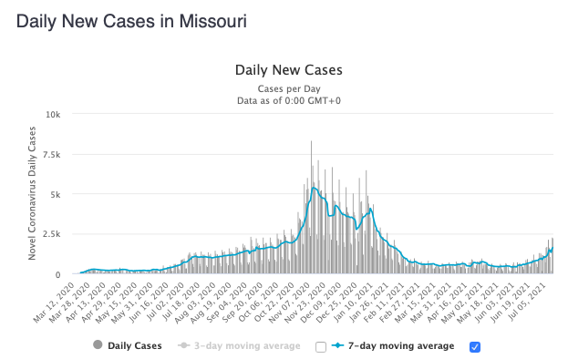 New cases in Missouri - mostly driven by the Delta variant - are back to their highest levels since January.