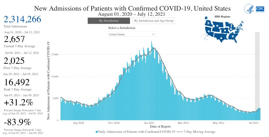 New hospital admissions in the US due to COVID-19 are up +31.2% from a week ago.