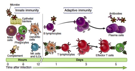 Regresando a los anticuerpos, el sistema inmune tiene dos clases de respuestas: una respuesta innata, que es rápida e inespecífica y una respuesta adaptativa, que es más lenta, pero específica para cada patógeno y crea memoria. La memoria inmunológica es