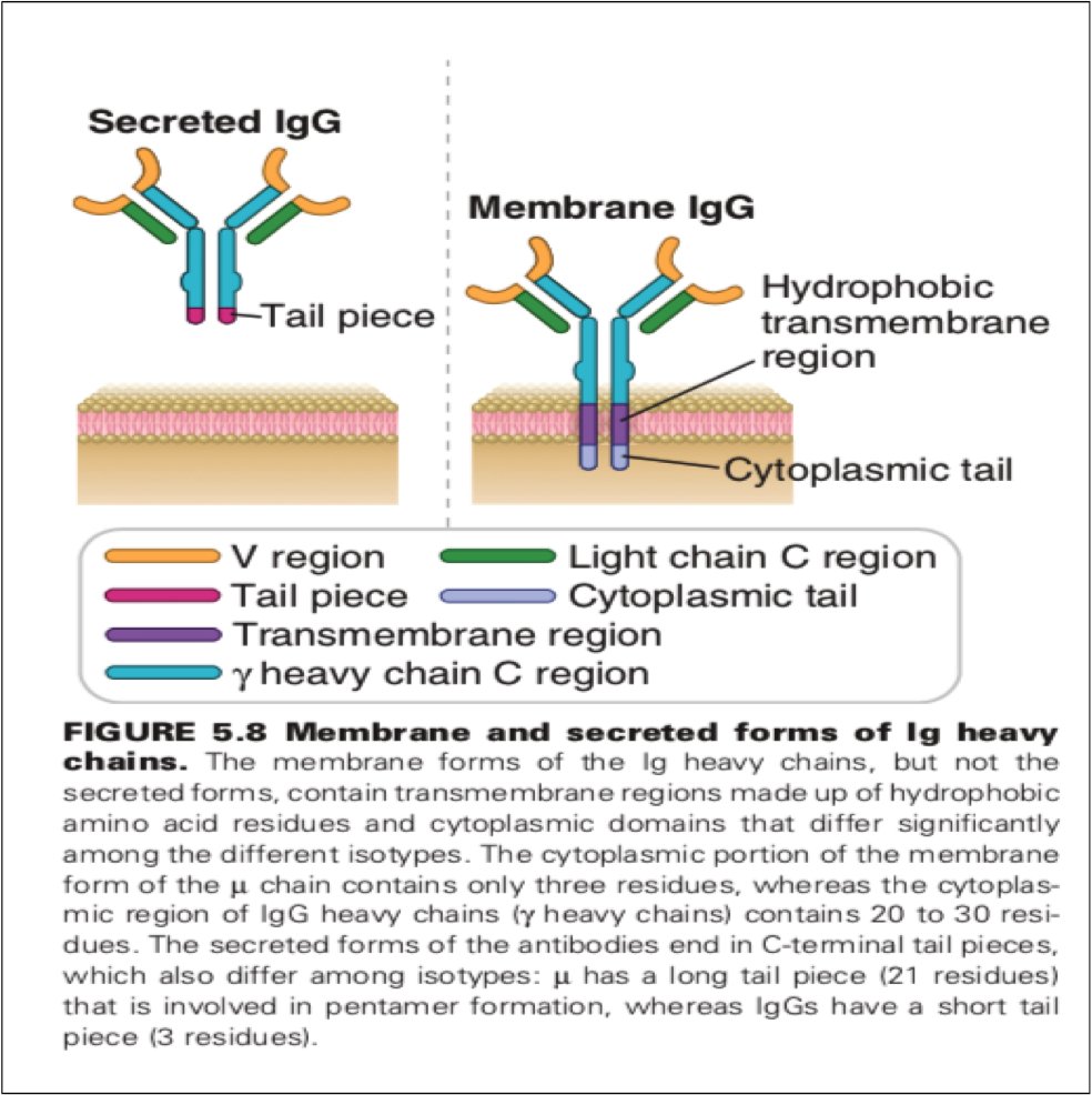 - IgM: es el primer anticuerpo que se genera en la respuesta inmune. Puede encontrarse como receptor en los linfocitos B.