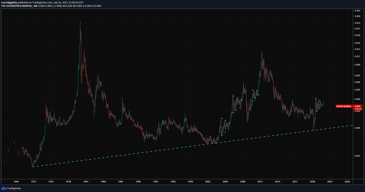 Silver hit literal rock bottom in March 2020 in terms of real M2 broad supply, similar to 2003.