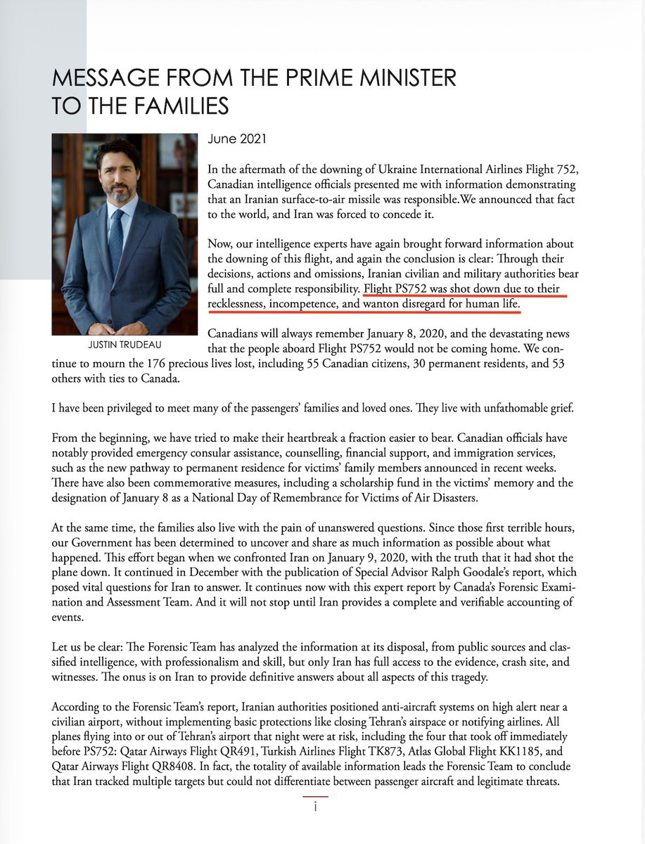 "While the Forensic Team found no evidence that the downing of Flight PS752 was premeditated ..."