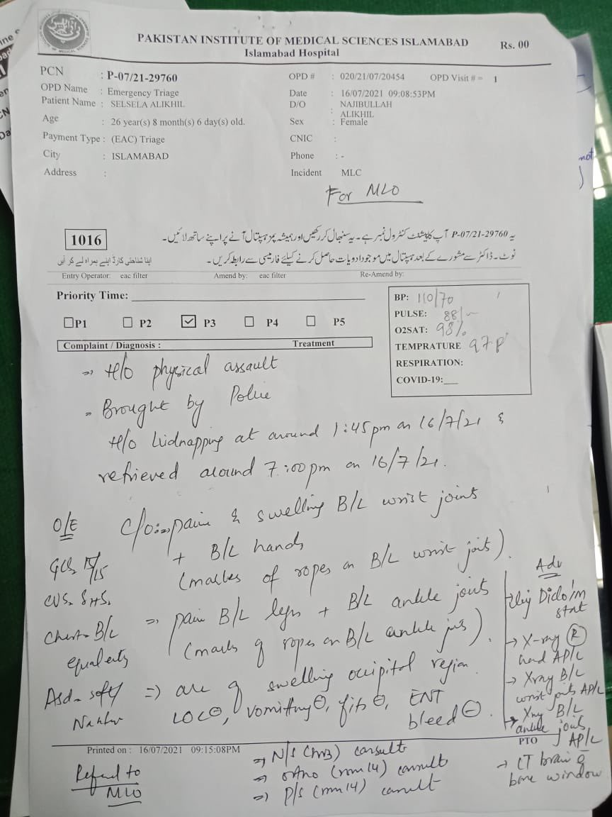 Medical Report of Afghan envoy’s 26 year old daughter who was kidnapped in Pakistan and tortured. Details of injuries mentioned in the report. #Afghanistan#Taliban