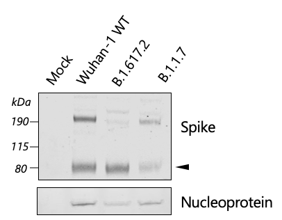 We also found that the Delta virus appears to be in a predominantly cleaved form as compared to Alpha. This may suggest that each virus particle is more infectious in addition to more virus particles being produced