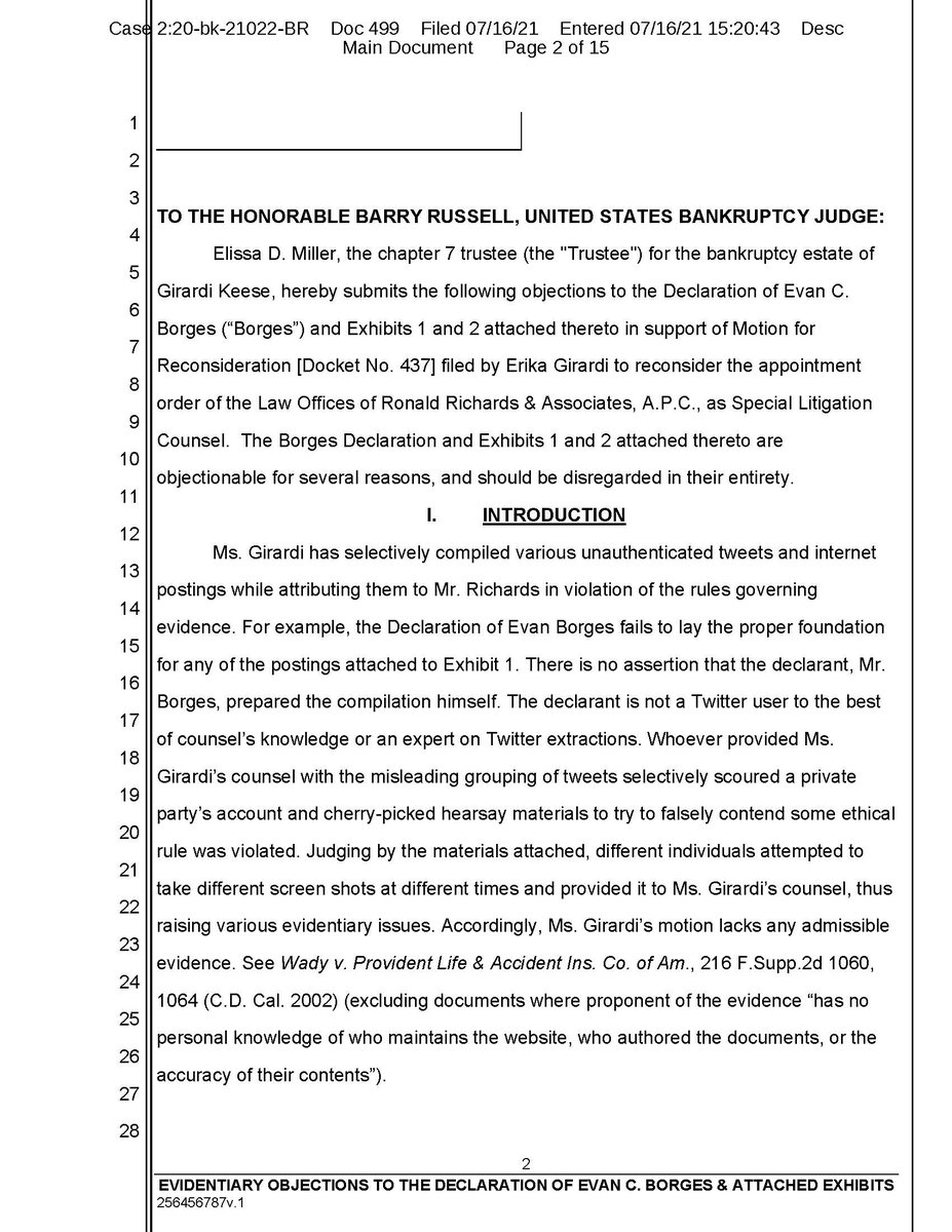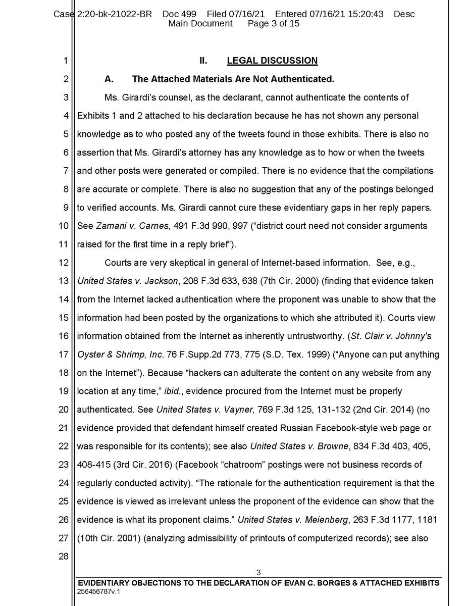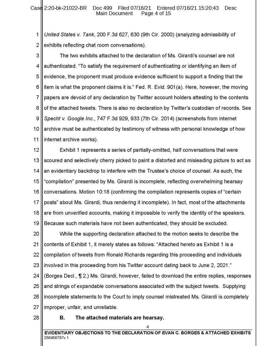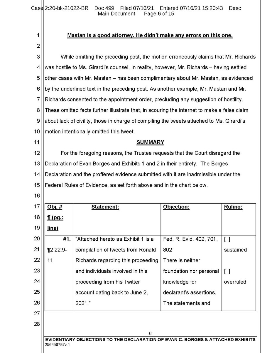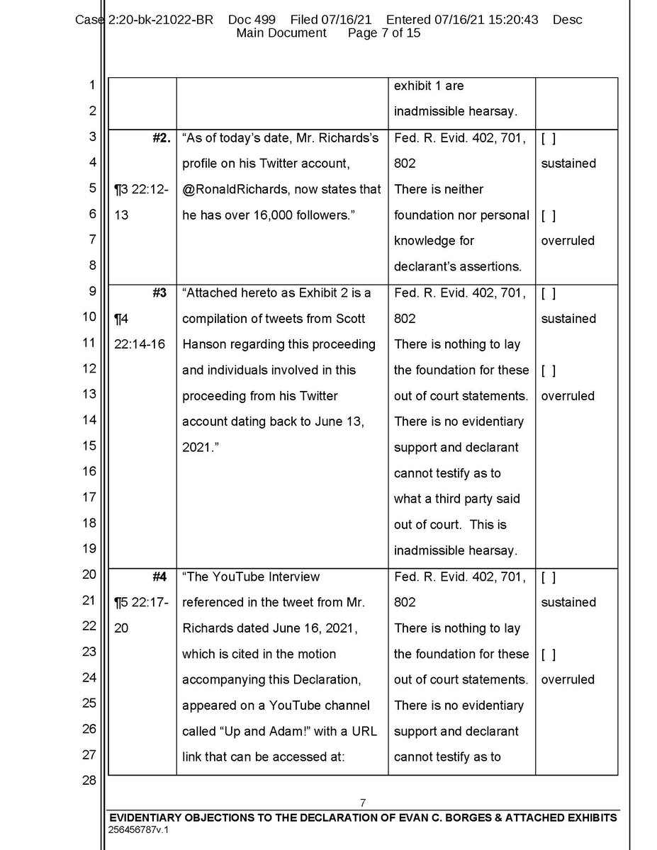 Evidentiary objections continued. This is so you can see the format on real filed court documents. We express no opinion on the outcome of the rulings, this is for academic purposes only and petitioning activity called freedom of expression!