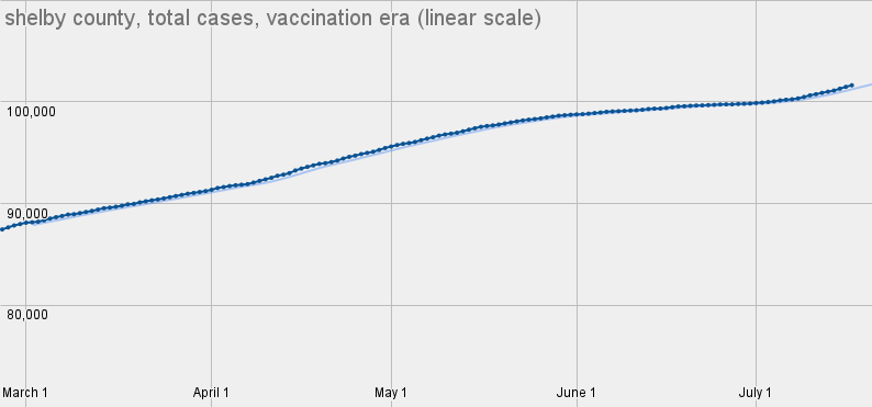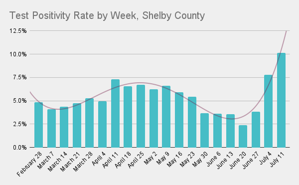 Here you can see how we flattened the curve in late-May through most of June...and how we've bent it back up again in July.