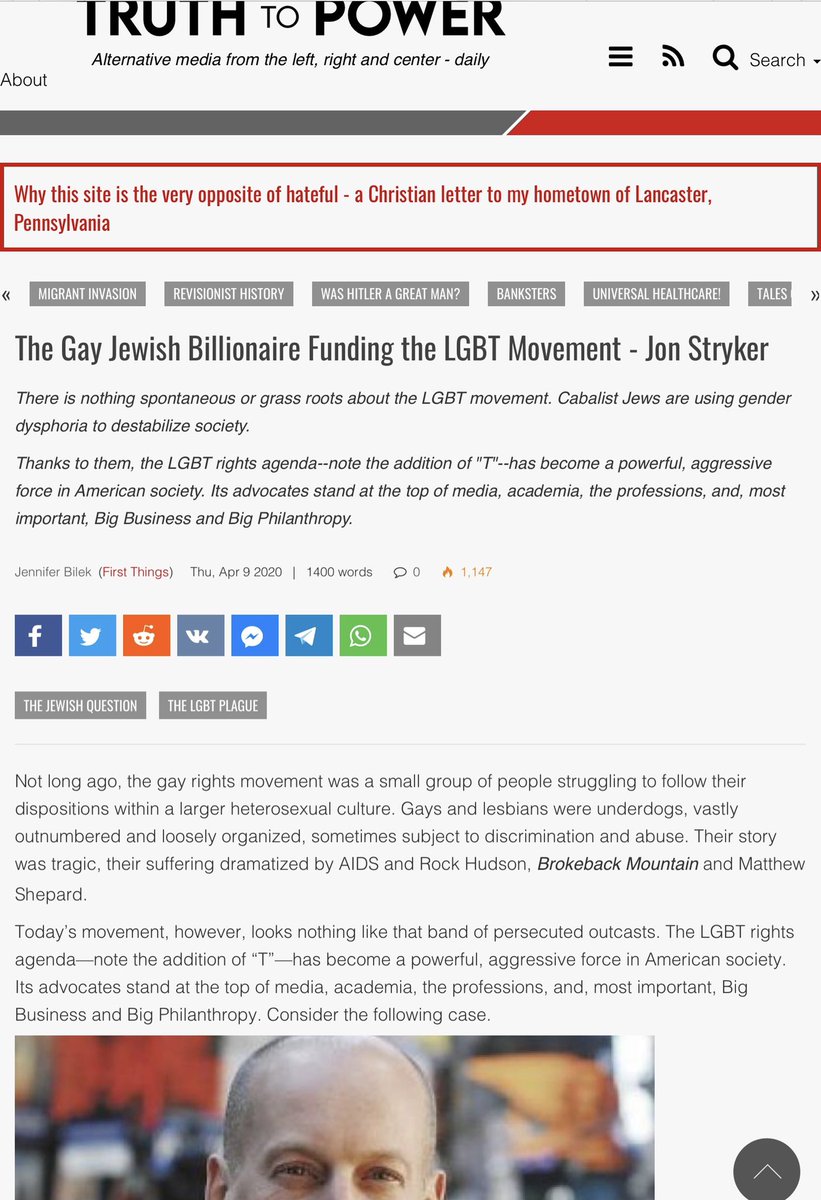 In her new book, the Economist’s Helen Joyce claims the trans “global agenda” is “shaped” by three Jewish billionaires. The sourcing is vague in the book, but she has previously cited Jennifer Bilek. Bilek has previously cited an explicit Nazi. Gendercrit launders antisemitism.