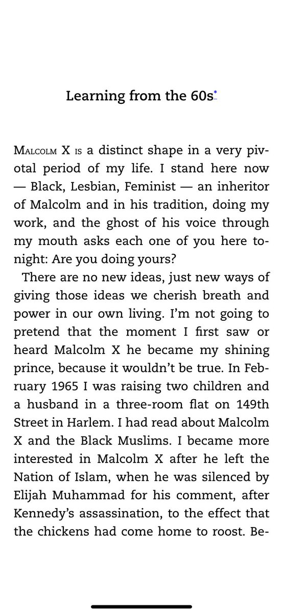 Reading and meditating on Luke 4 and this essay in Sister Outsider. Audre Lorde was so, so brilliant.