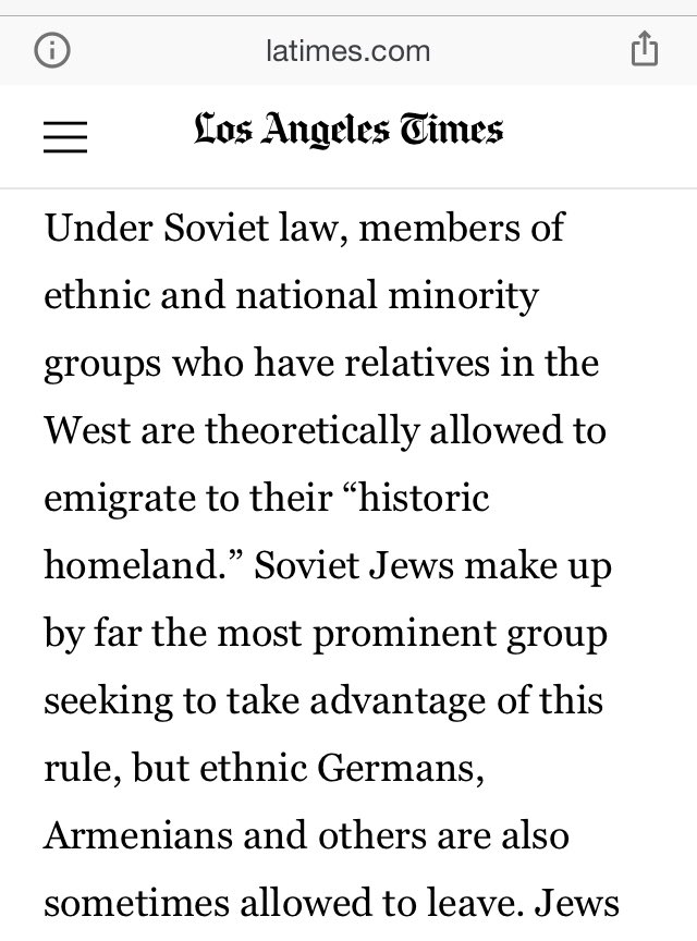 Soviet Jews make up by far the most prominent group seeking to take advantage of this rule, but ethnic Germans, Armenians and others are also sometimes allowed to leave.