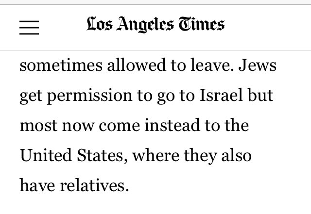 Jews get permission to go to Israel but most now come instead to the United States, where they also have relatives.