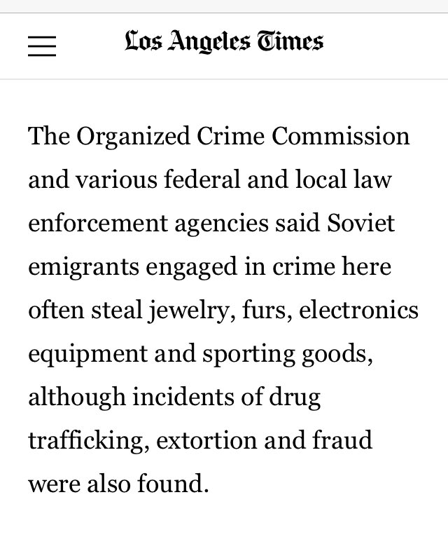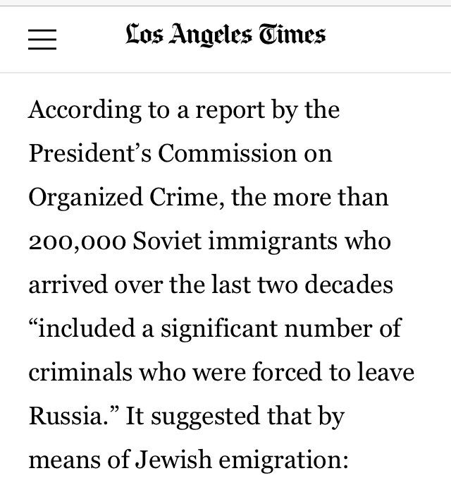 According to a report by the President’s Commission on Organized Crime, the more than 200,000 Soviet immigrants who arrived over the last two decades “included a significant number of criminals who were forced to leave Russia.”