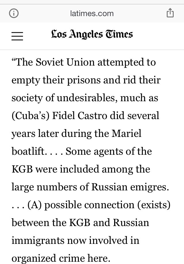 🚨 (A) possible connection (exists) between the KGB and Russian immigrants now involved in organized crime here.