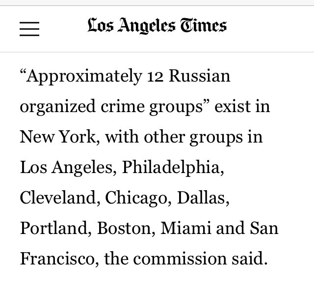 “Approximately 12 Russian organized crime groups” exist in New York, with other groups in Los Angeles, Philadelphia, Cleveland, Chicago, Dallas, Portland, Boston, Miami and San Francisco, the commission said.