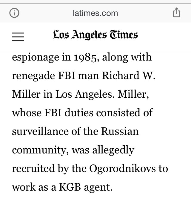 Miller, whose FBI duties consisted of surveillance of the Russian community, was allegedly recruited by the Ogorodnikovs to work as a KGB agent.