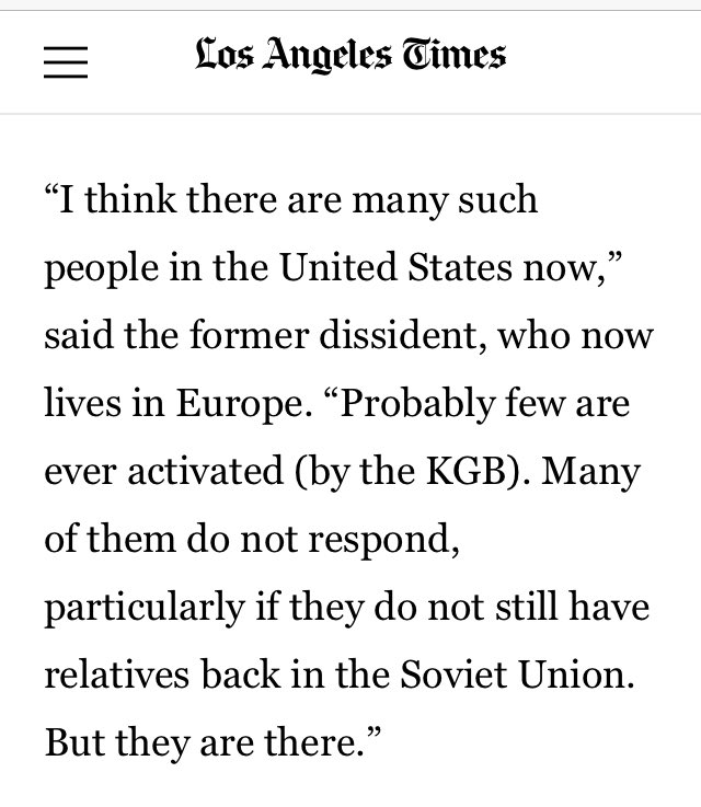 “I think there are many such people in the United States now,” said the former dissident. “Probably few are ever activated (by the KGB). Many of them do not respond, particularly if they do not still have relatives back in the Soviet Union. But they are there.”