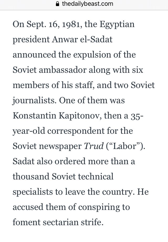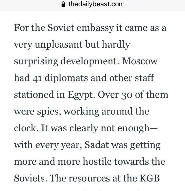 For the Soviet embassy, it was an unpleasant but unsurprising development. Moscow had 41 diplomats & other staff stationed in Egypt. Over 30 of them were spies, working around the clock. It was not enough, as every year, Sadat was getting more & more hostile towards the Soviets.