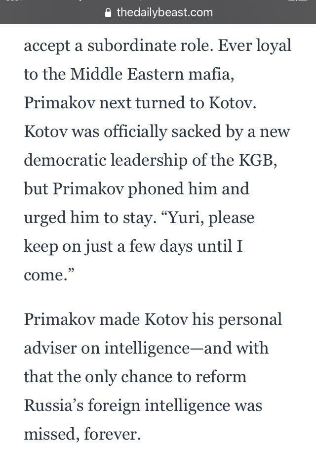 Ever loyal to the Middle Eastern mafia…Primakov turned to Kotov, who had been officially sacked by a new democratic leadership of the KGB.