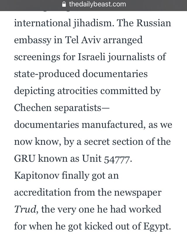 🚨🚨 The Russian embassy in Tel Aviv arranged screenings for Israeli journalists of state-produced documentaries depicting atrocities committed by Chechen separatists—documentaries manufactured, as we now know, by a secret section of the GRU known as Unit 54777.