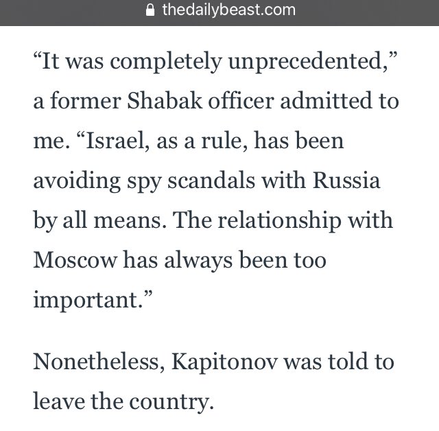“It was completely unprecedented,” a former Shabak officer admitted to me. “Israel, as a rule, has been avoiding spy scandals with Russia by all means. The relationship with Moscow has always been too important.”