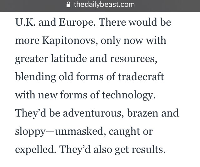 There would be more Kapitonovs, only now with greater latitude and resources, blending old forms of tradecraft with new forms of technology. They’d be adventurous, brazen and sloppy—unmasked, caught or expelled. They’d also get results.