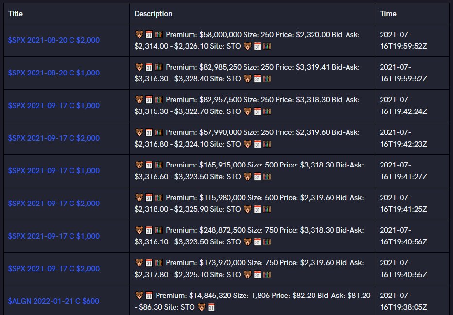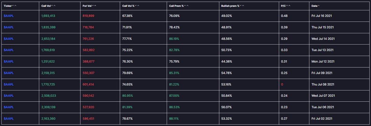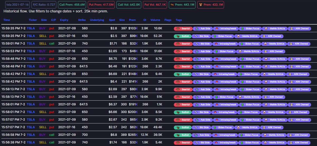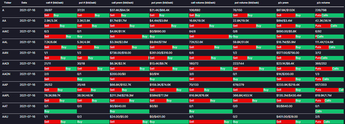Historical flow: (1) The options flow feed for dates you can specify in the filters