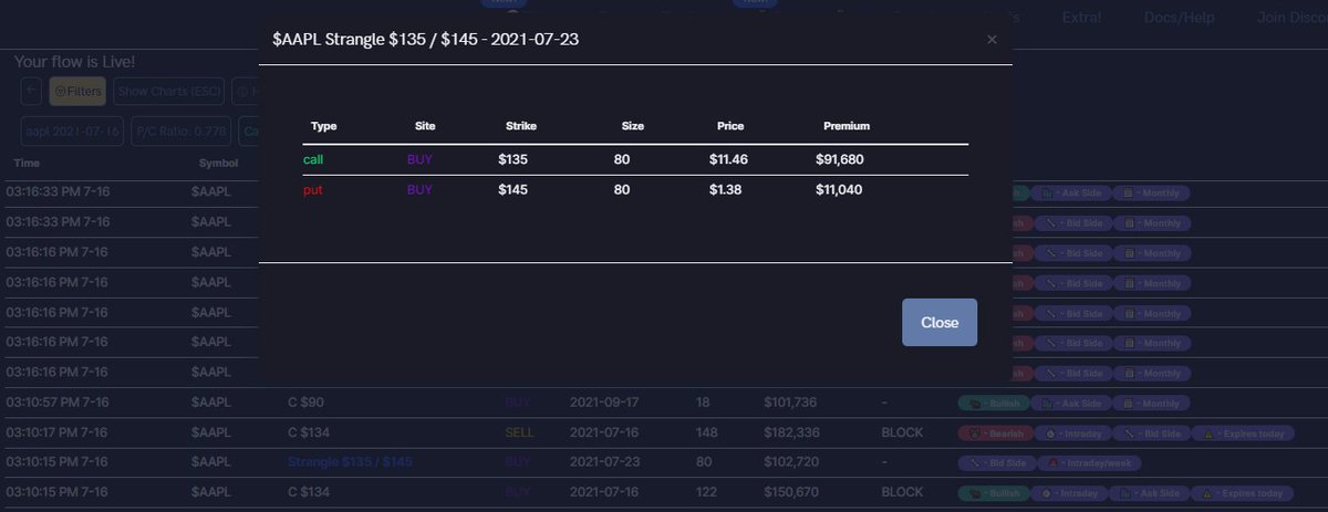 Group spreads, straddle, sweeps, blocks, and option strategies (1) Beta view for Flow (2) Options strategies identified for you