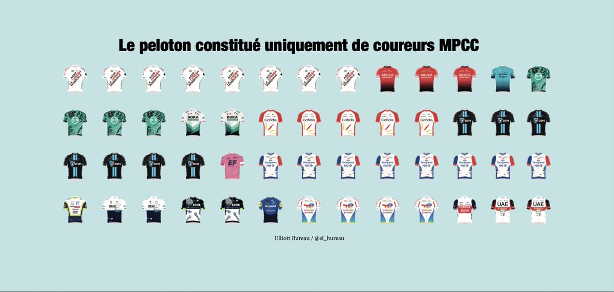 En clair, le peloton composé uniquement d’adhérents au MPCC ressemblerait à ça :