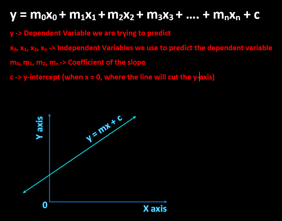 The formula => y = m0x0 + m1x1 + .. + c