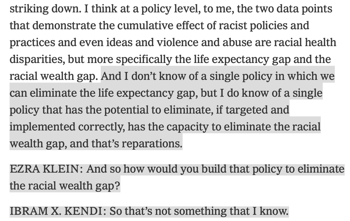 Then when Klein gently but somewhat insistently pushes about whether defunding the police is in the black interest or not, Kendi gives a series of convoluted and unsatisfying answers. Hard to believe such deliberation can work on every single law and policy going forward.