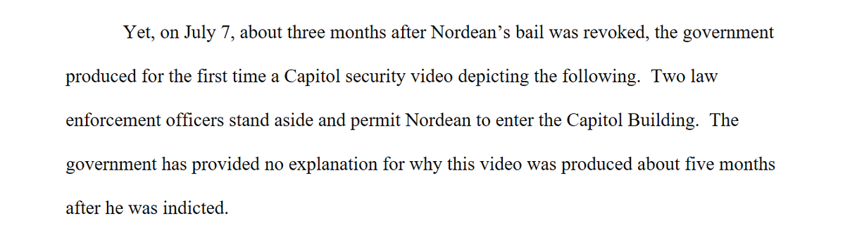He's arguing the govt was slow in getting information to his lawyers including a Capitol security video showing cops standing aside and letting him into the building.