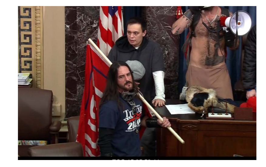 Moss notes Hodgkins had a Trump flag with him in the Capitol.