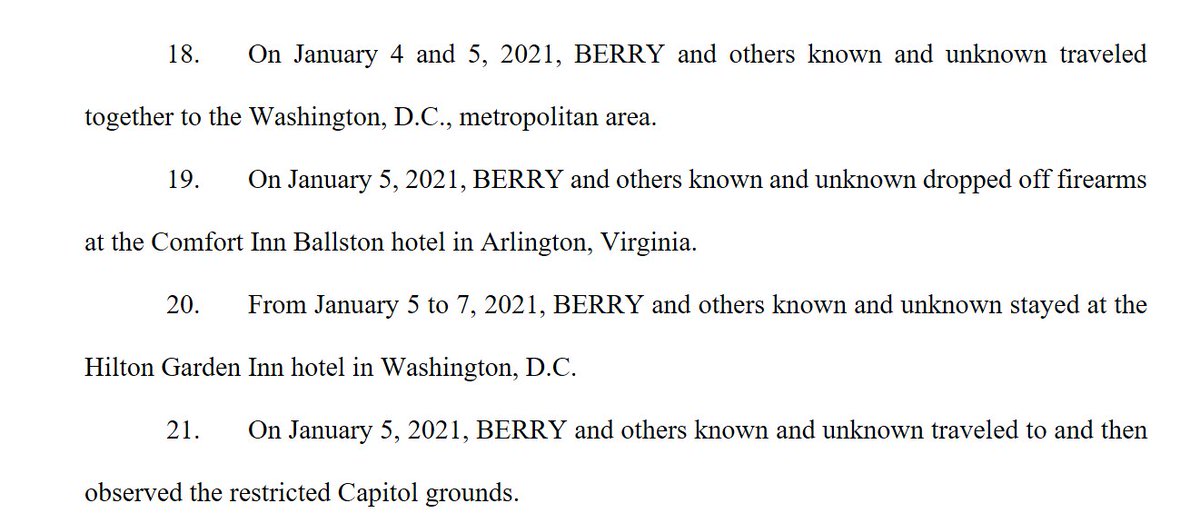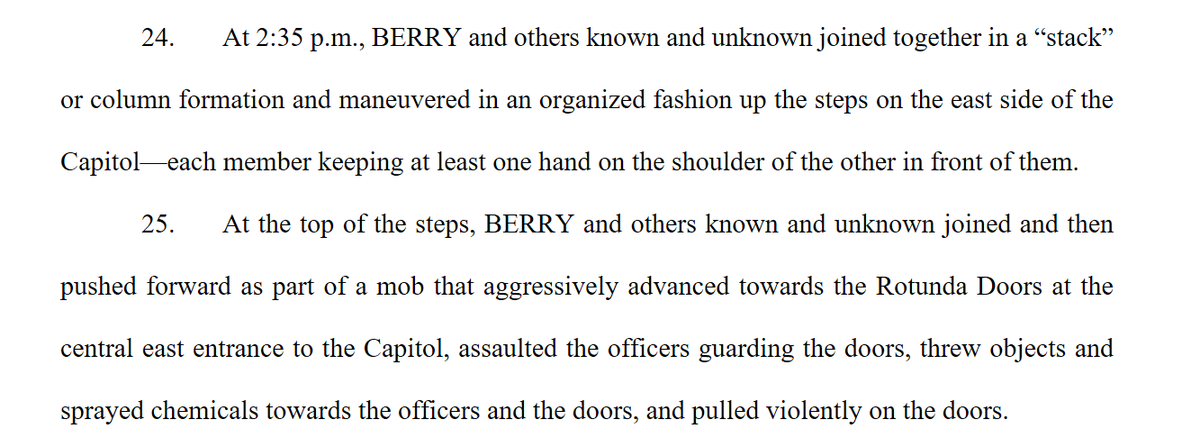 Prosecutors say Berry stashed weapons w/the Oath Keepers' quick reaction force in a Virginia hotel and took part in the military style "stack" that breached the Capitol.
