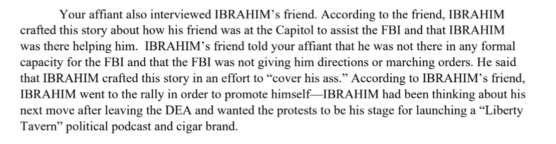 When DOJ's Inspector General's office interviewed Ibrahim in March, he said he'd gone to the Capitol to help a friend in the FBI document the event.