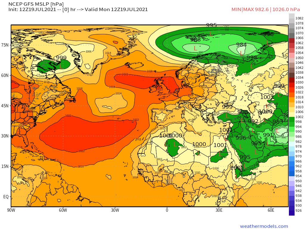 In the latest GFS 1hourly simulation model the solution remains the same as of today. A large typhoon like low (in terms of water content) will make landfall in Japan and stay over the country for some time bringing torrential rains during #Olympics2021