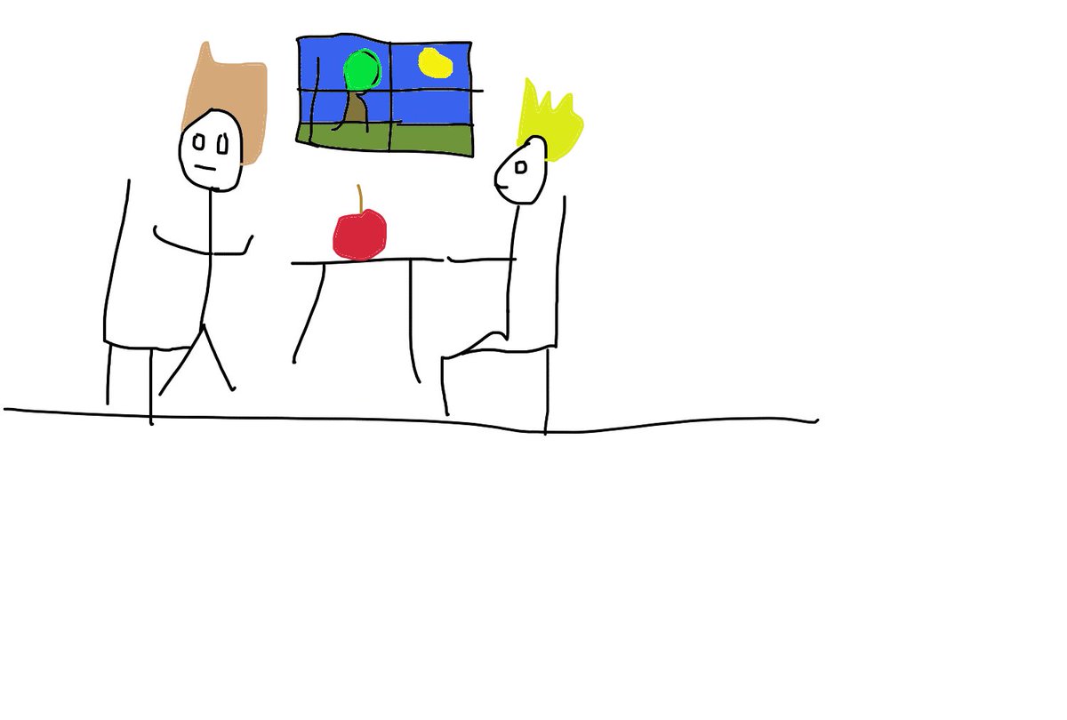 They are now talking about their intimate histories with other humans. It turns out the guy is annoyed that the girl once dated his brother. He is now standing up and yelling about it.