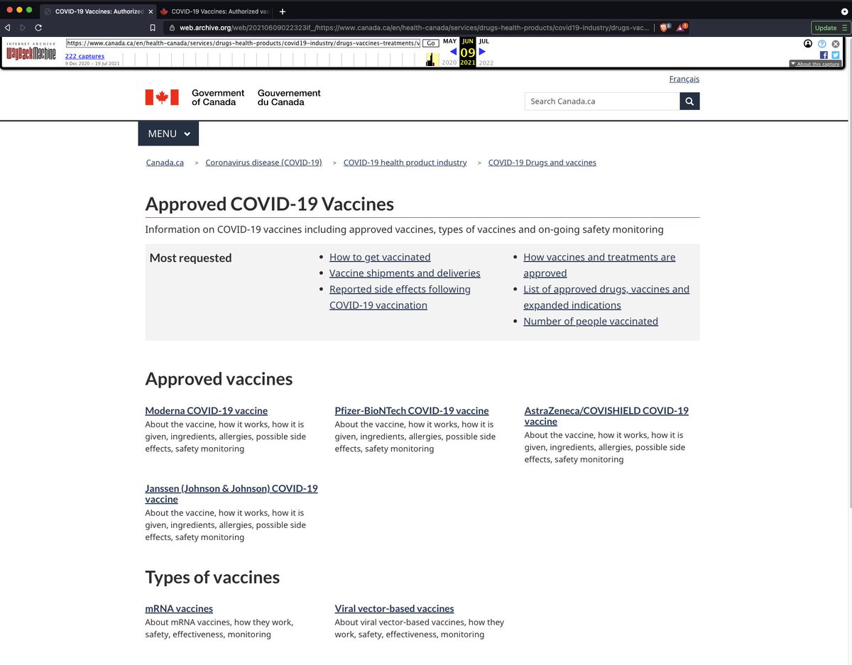 Until June 9th, 2021, the Health Canada webpage stated that Vaccines were "Authorized".
