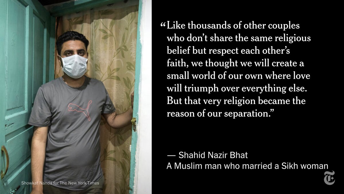 New laws across India, in states ruled by Prime Minister Narendra Modi’s Bharatiya Janata Party, are trying to ban interfaith unions. Across the country, vigilante informers tip off the police to planned interfaith marriages. nyti.ms/2VPOKwH