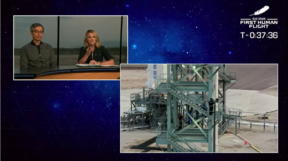The Blue Origin livestream for the first crewed New Shepard launch has started. Still another 90 minutes before liftoff.