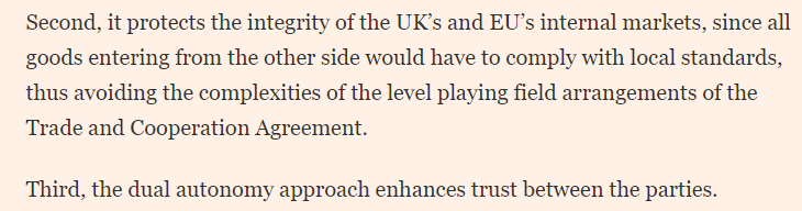 Maybe even blunter than I am. Rightly. Worth noting the total absence of support for alternatives to the NI protocol from any serious EU commentator, or serious EU trade or law expert. Can't be bothered with unicorns especially given power imbalance.