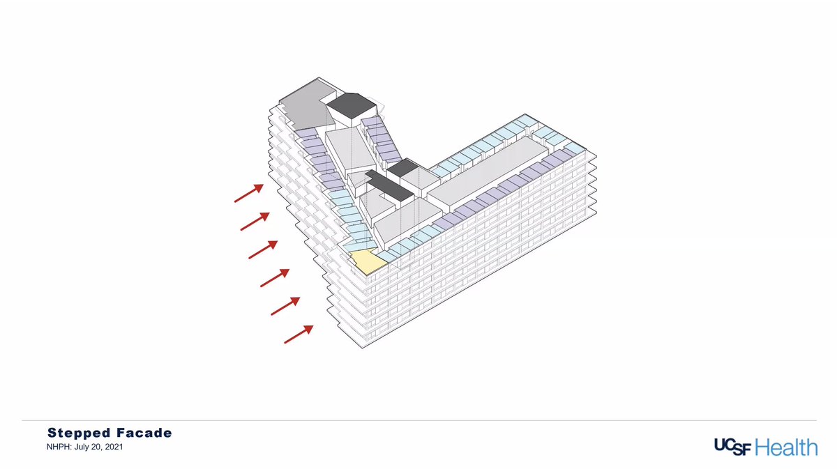 Frantzen is talking about taking the overall volume and breaking it into smaller elements. It looks like they're not talking about making it shorter, but removing horizontal space from the middle of the hospital.