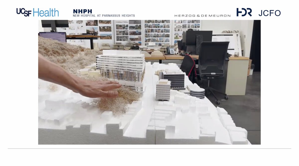 Fred Whitney, UCSF VP of Real Estate, is talking about infrastructure, including oxygen tanks. It's not possible to fit all infrastructure in the building due to its size.