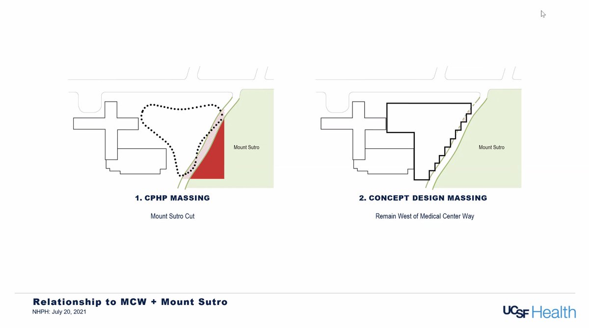 Frantzen says they've decided to not cut into Mt Sutro. The hospital will now be entirely west of Medical Center Way to minimize the impact on Mt. Sutro
