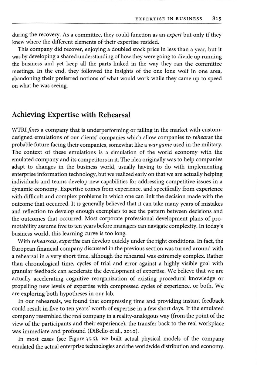 27/ DiBello believes that business expertise relies not on superior analysis, but is instead on better organisation of knowledge, which allows the expert to perceive better, and therefore make better decisions.