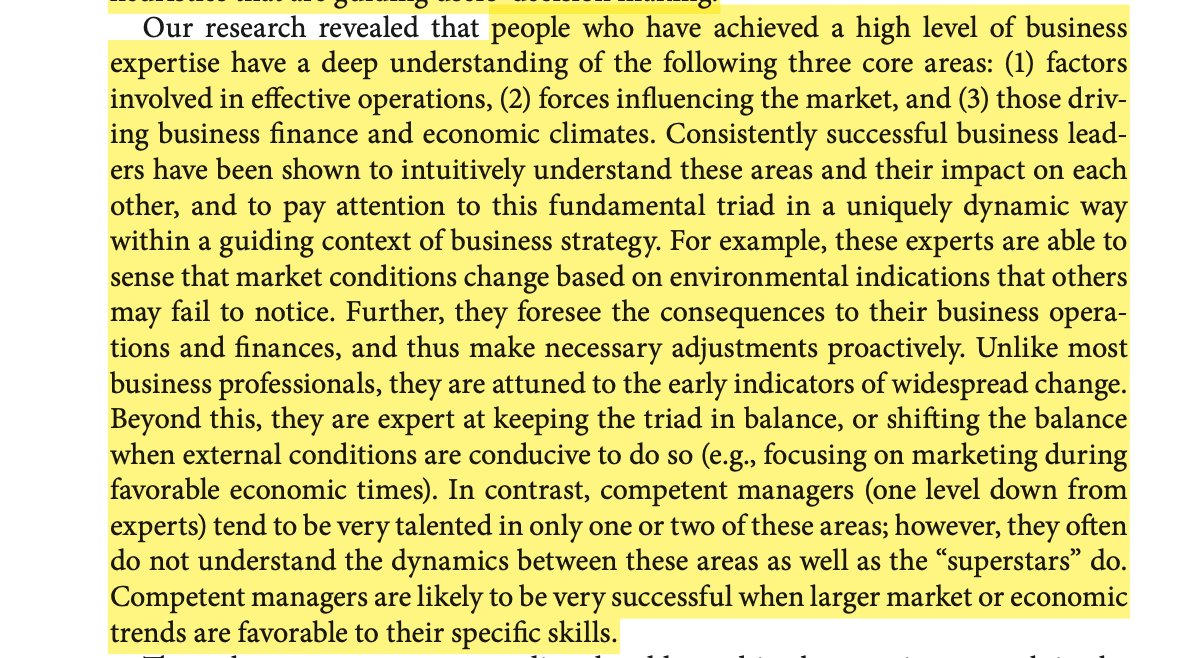 20/ The implication is that the entire exec team has to be evaluated together, because deficiencies in some legs of the triad may be shored up if some members have it and others don't. The best business experts have all 3, of course.