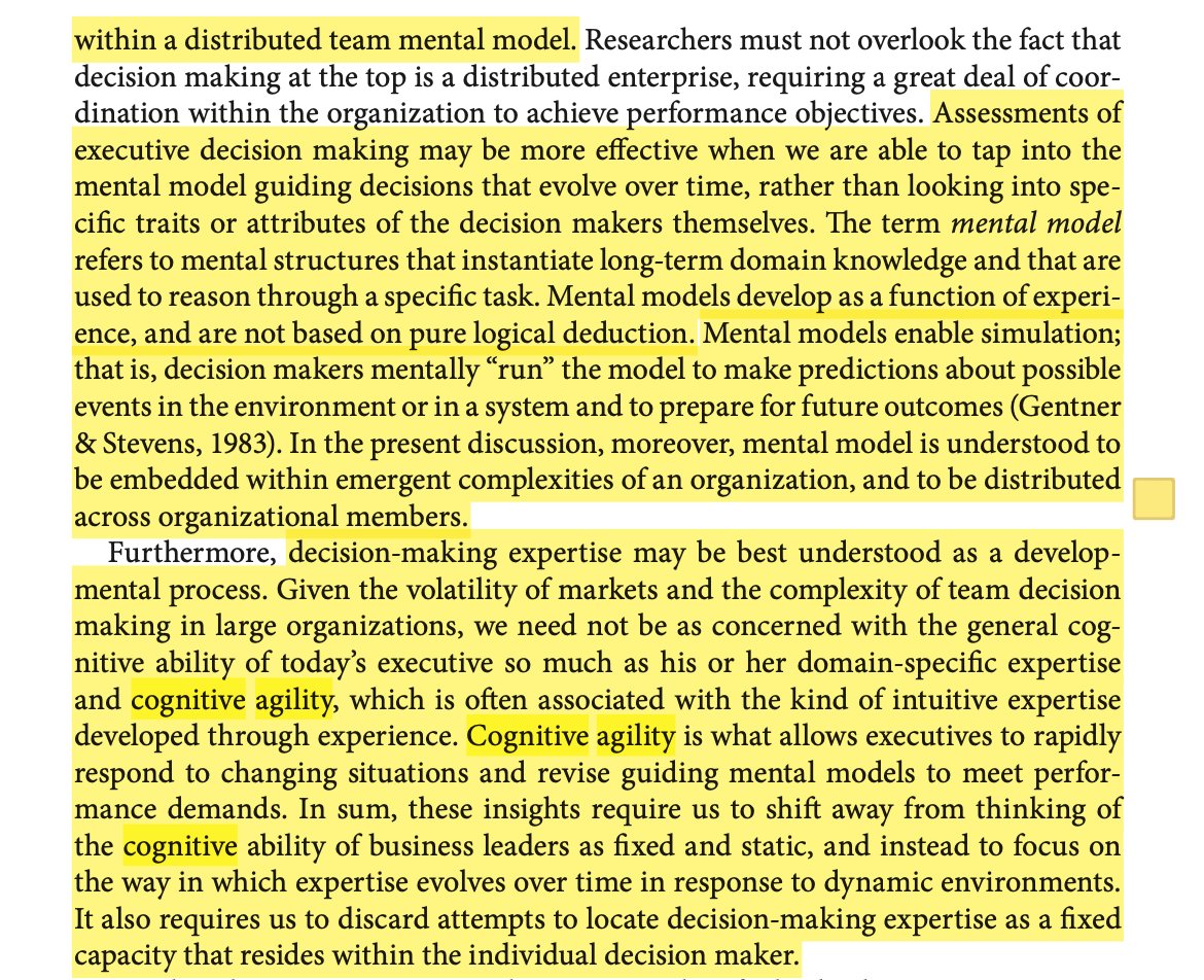 13/ Cognitive agility is defined as the ability of an exec to update his or her mental models in response to changing situations.