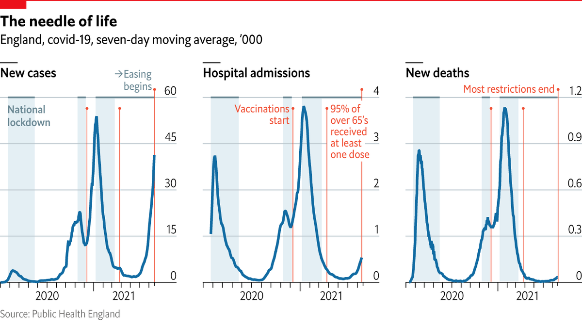 The British government certainly thinks it is possible to relax restrictions without incurring lots more deaths and overwhelming the NHS econ.st/3Bnb8Om