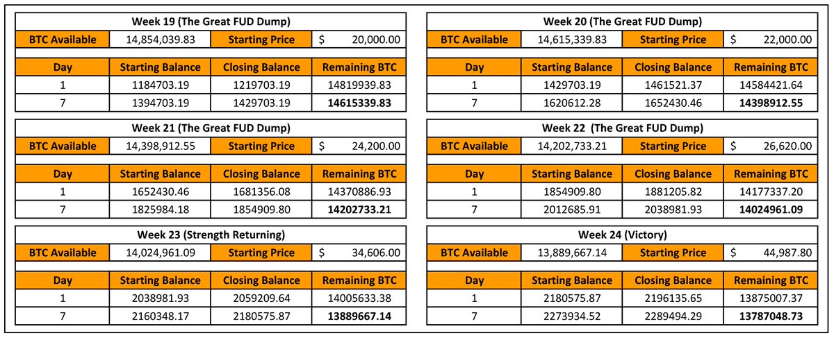 @FriarHass "The DCA army picked up an additional 800,000 BTC in weeks 19 to 22. With all speculative, weak-handed coins almost completely absorbed, the price bounces back very strongly, gaining 30% week on week in weeks 23 and 24."