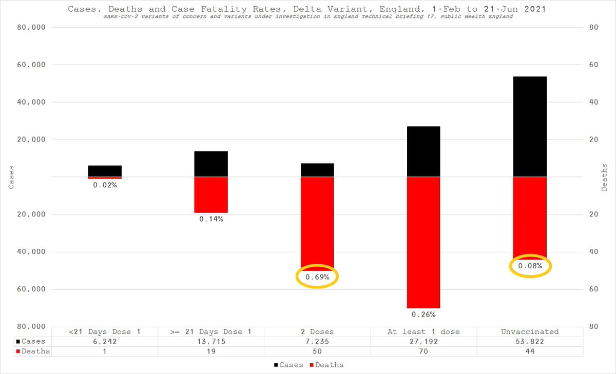 4) and when you practice your tests mostly on unvaccinated citizens, then CFR for those decreases faster than vaccinated people and one might claim that "being vaccinated is 8-9 times more dangerous".