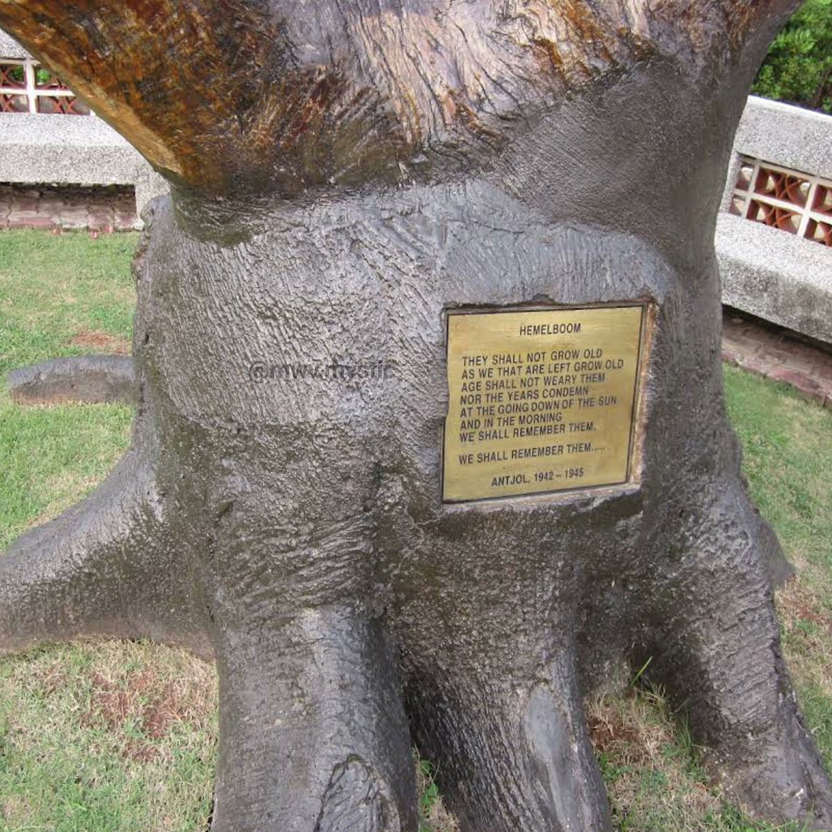 Di batang pohon tersebut terdapat prasasti bertuliskan Hemelboom (pohon surga) yang memuat penggalan puisi “For The Fallen” karya seorang penyair Inggris, Laurence Binyon yg isinya :